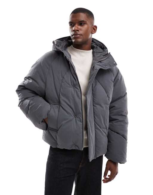 ASOS DESIGN - Oversized gewatteerd jack met capuchon in grijs