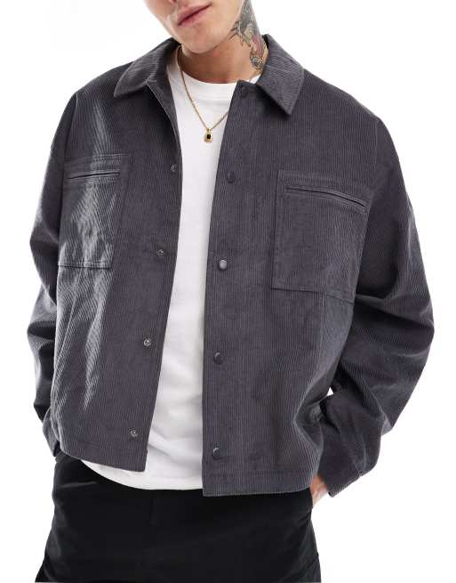 ASOS DESIGN - Oversized Harrington jack van corduroy met zakken in grijs
