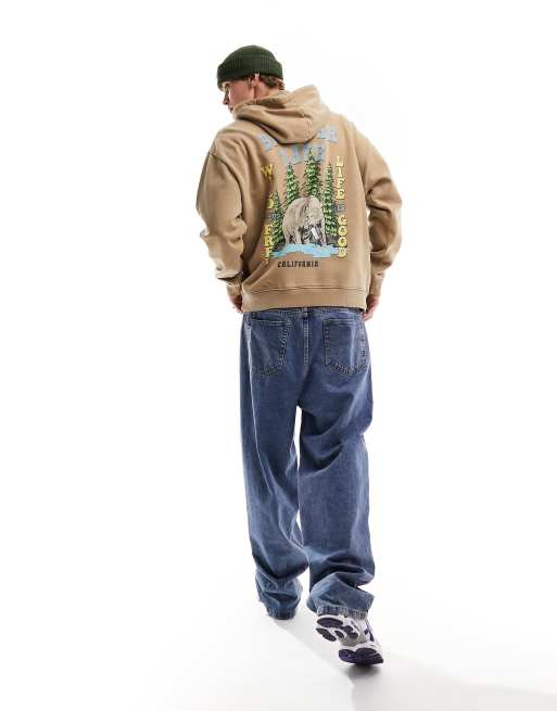 ASOS DESIGN - Oversized hoodie in bruin met wassing en outdoorprint op de voor- en achterkant