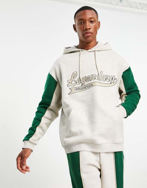 ASOS DESIGN - Oversized hoodie in gemêleerd grijze en groene kleurvlakken met borduursel