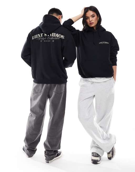 ASOS DESIGN - Oversized hoodie met print op de voor- en achterkant in zwart