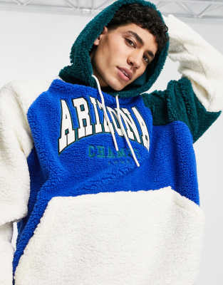 ASOS DESIGN - Oversized hoodie van borg met kleurvlakken in collegestijl