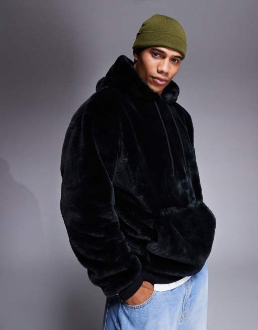 ASOS DESIGN - Oversized hoodie van imitatiebont in zwart