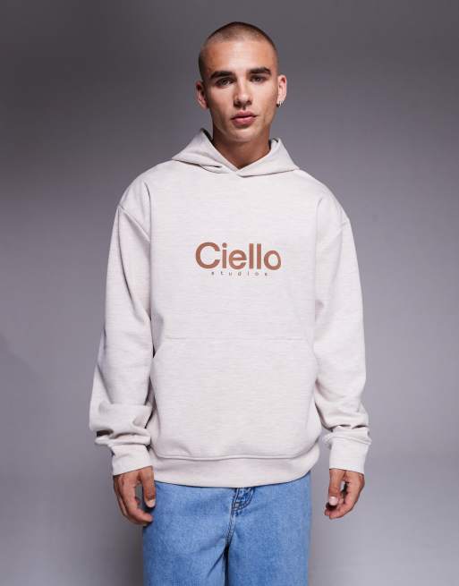 ASOS DESIGN - Oversized hoodie van stof in scuba-stijl met print op de borst in gemêleerd lichtbeige