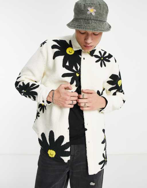 ASOS DESIGN - Oversized jaren 90 overhemd van teddy borg met bloemenprint