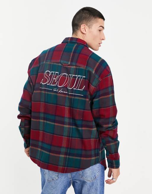 ASOS DESIGN - Oversized jaren 90-stijl geruit oversized in bordeauxrood met stadsprint op de achterkant