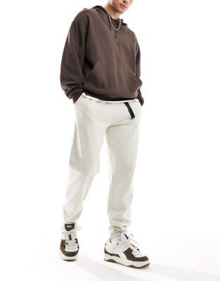 ASOS DESIGN - Oversized joggingbroek met cargozak en geweven riemdetail in beige