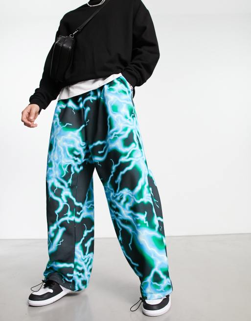 ASOS DESIGN - Oversized joggingbroek met parachutepijpen en bliksemprint