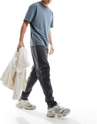 ASOS DESIGN - Oversized joggingbroek met toelopende pijpen en cargozakken in zwart met wassing