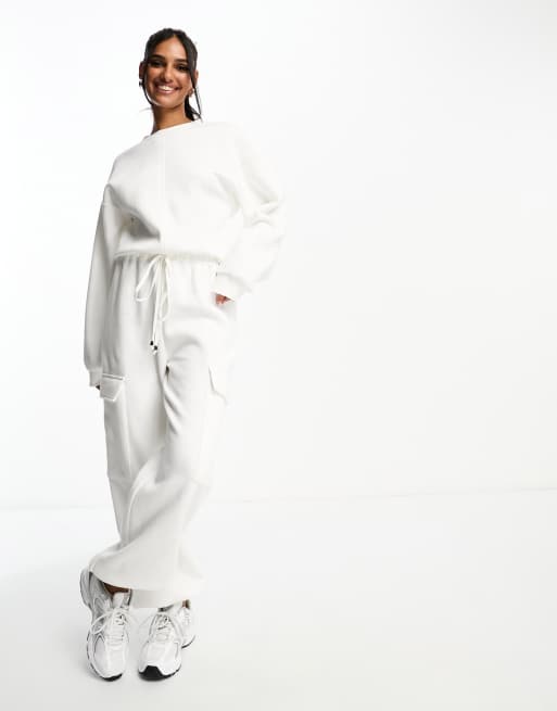 ASOS DESIGN - Oversized jumpsuit van sweaterstof met zakken in crème