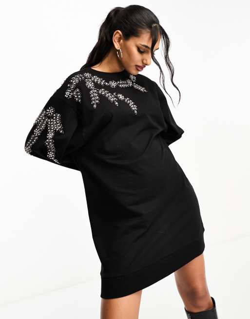 ASOS DESIGN - Oversized mini-sweatshirtjurk met versiering