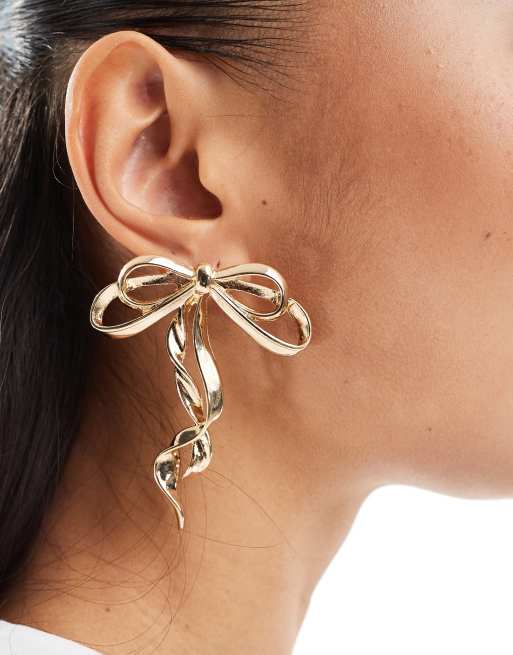 ASOS DESIGN - Oversized oorbellen met strikdetail in goudkleur