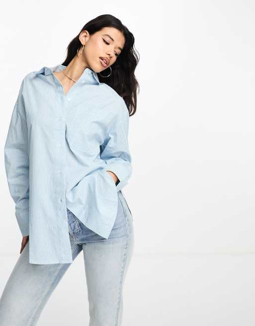 ASOS DESIGN - Oversized overhemd in blauw met witte strepen