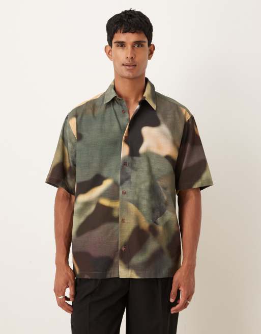 ASOS DESIGN - Oversized overhemd in kaki met abstracte print