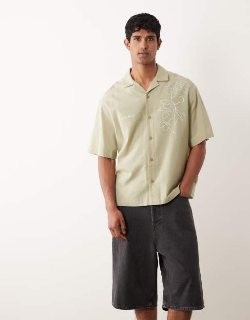 ASOS DESIGN - Oversized overhemd met grafische bloemenprint in kaki