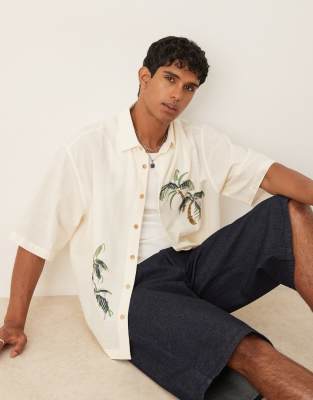ASOS DESIGN - Oversized overhemd met palmenprint in beige