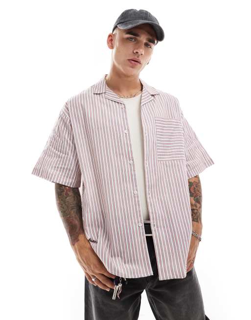 ASOS DESIGN - Oversized overhemd met reverskraag en seersucker strepen in roze