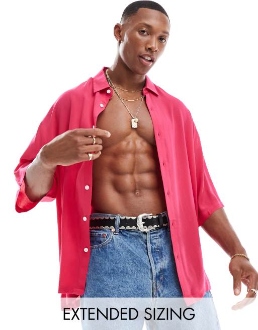 ASOS DESIGN - Oversized overhemd van viscose in felroze