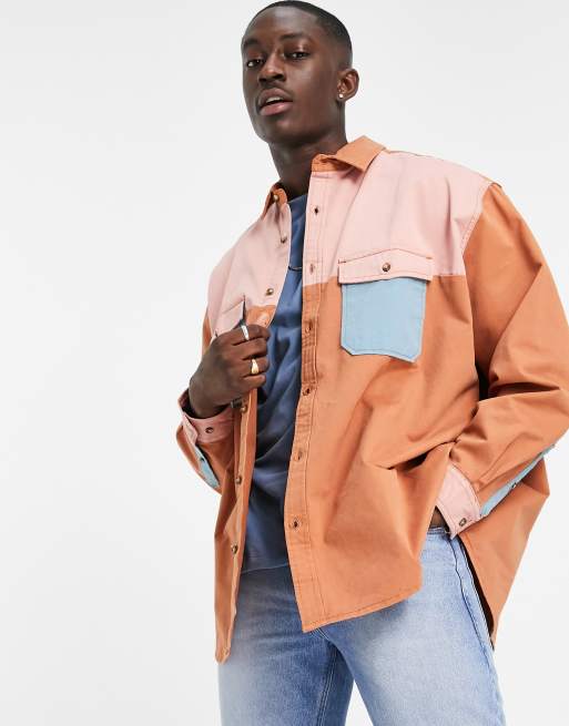 ASOS DESIGN - Oversized overshirt van keperstof met wijde pasvorm en kleurvlakken