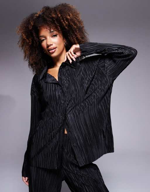 ASOS DESIGN - Oversized plissé overhemd in zwart, deel van co-ord set