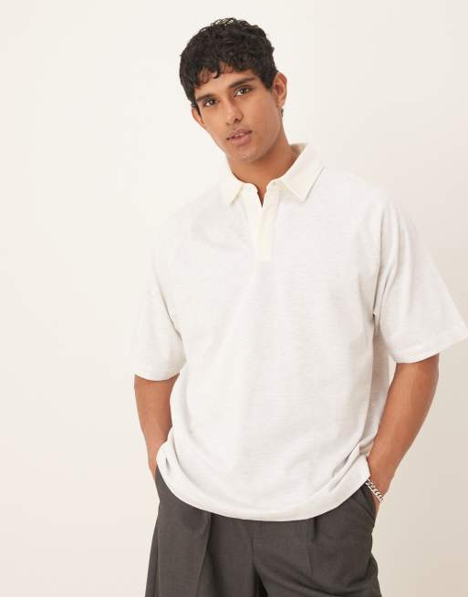 ASOS DESIGN - Oversized polo in gemêleerd havermout