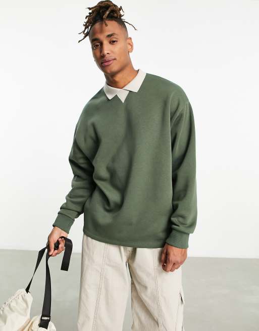ASOS DESIGN - Oversized polo sweatshirt in groen met contrasterende kraag