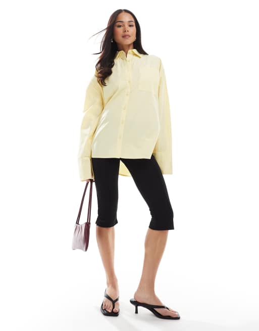 ASOS DESIGN - Oversized poplin overhemd met extreme manchetten in lichtgeel