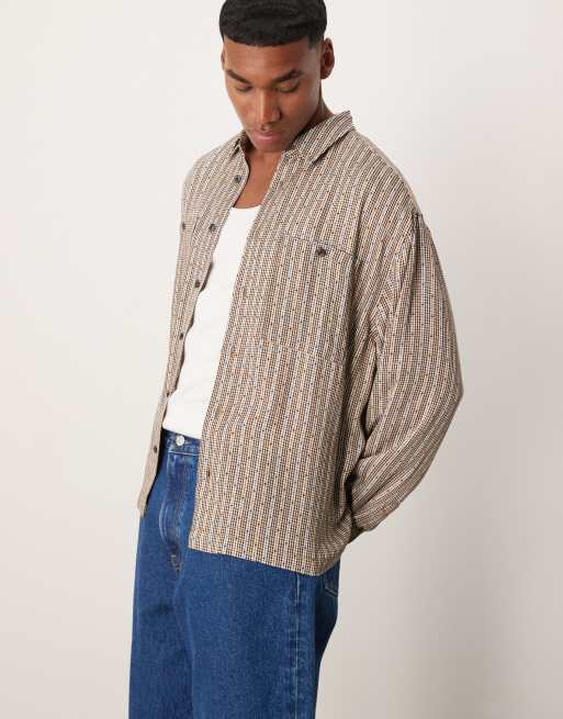 ASOS DESIGN - Oversized recht overhemd met neutrale retro strepen