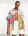 ASOS DESIGN - Oversized recht overhemd van linnenmix met reverskraag in patchwork bloemenprint