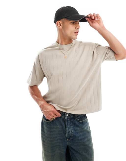 ASOS DESIGN - Oversized recht T-shirt met geribbelde textuur in stone