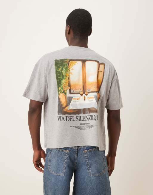 ASOS DESIGN - Oversized recht T-shirt met grafische landschapsprint in gemêleerd grijs