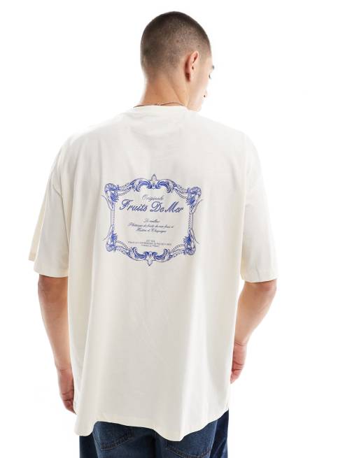 ASOS DESIGN - Oversized recht T-shirt met print op de achterkant in gebroken wit