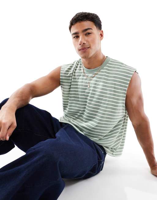 ASOS DESIGN - Oversized recht T-shirt met strepen in saliegroen en wit
