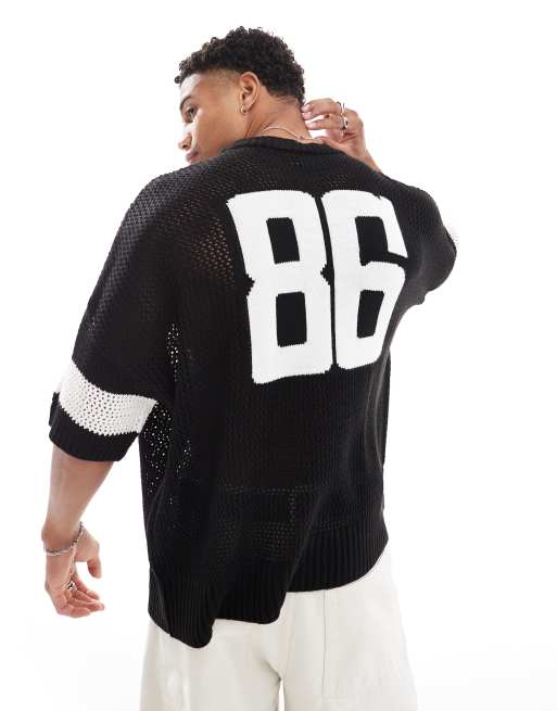 ASOS DESIGN - Oversized recht T-shirt met structuur en cijferprint in zwart