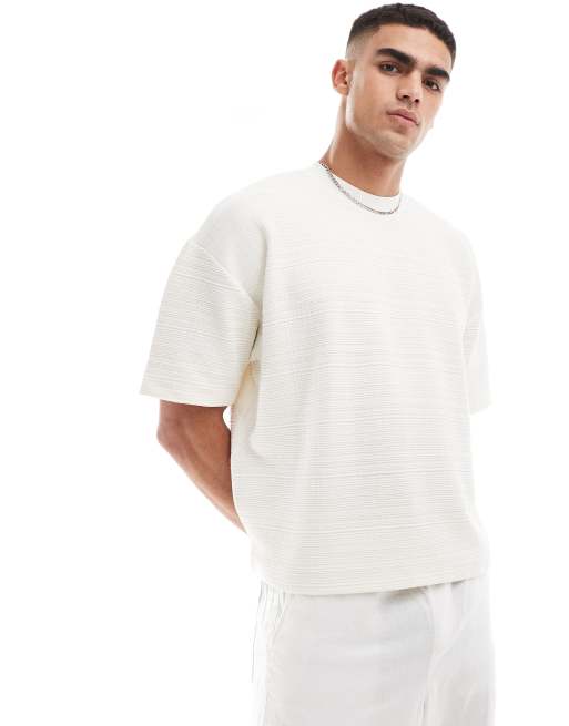 ASOS DESIGN - Oversized recht T-shirt met textuur in crème