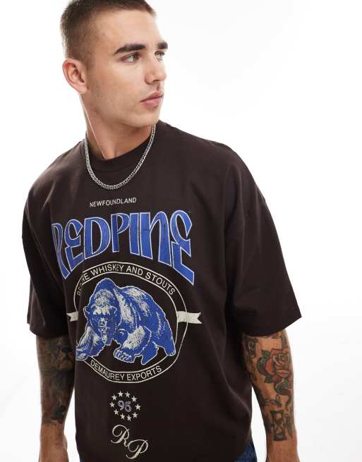 ASOS DESIGN - Oversized recht T-shirt met verlaagde schouders met print aan de voorkant in bruin