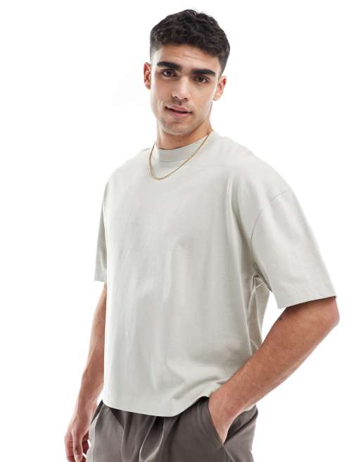 ASOS DESIGN - Oversized recht T-shirt van zware stof in lichtgrijs