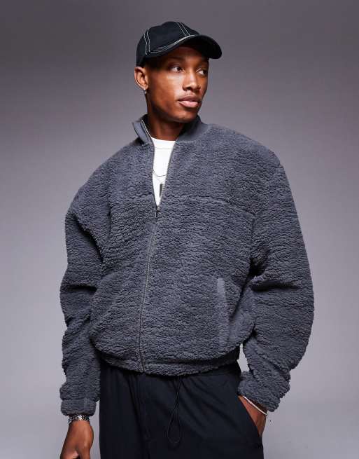ASOS DESIGN - Oversized recht trainingsjack van borg in grijs