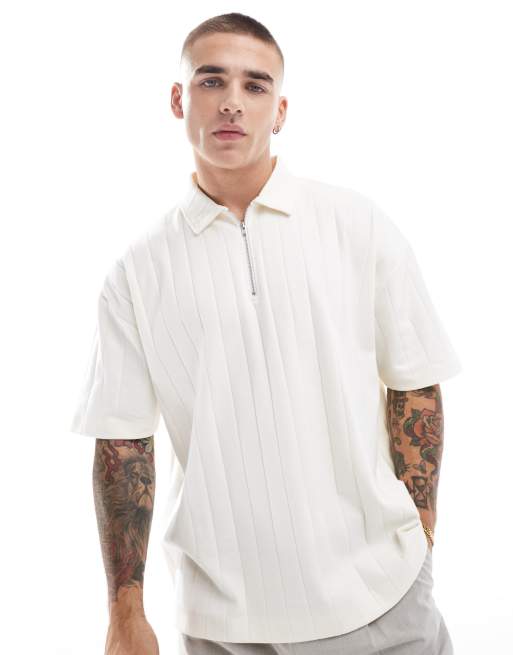 ASOS DESIGN - Oversized rechte polo met rits in crème