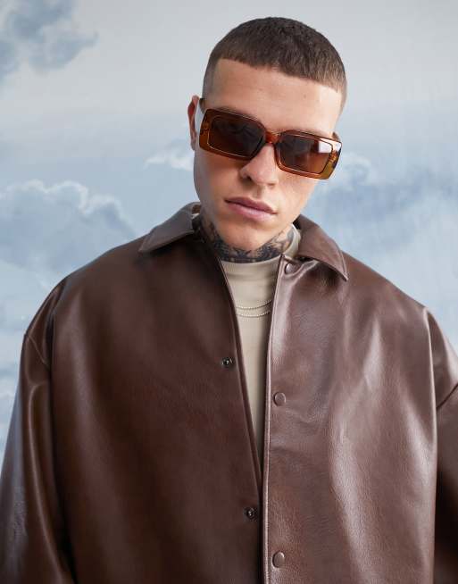 ASOS DESIGN - Oversized rechthoekige zonnebril in bruin