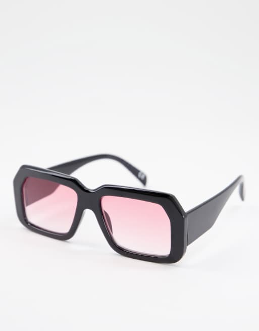 ASOS DESIGN - Oversized retro zonnebril in zwart met roze glazen - BLACK