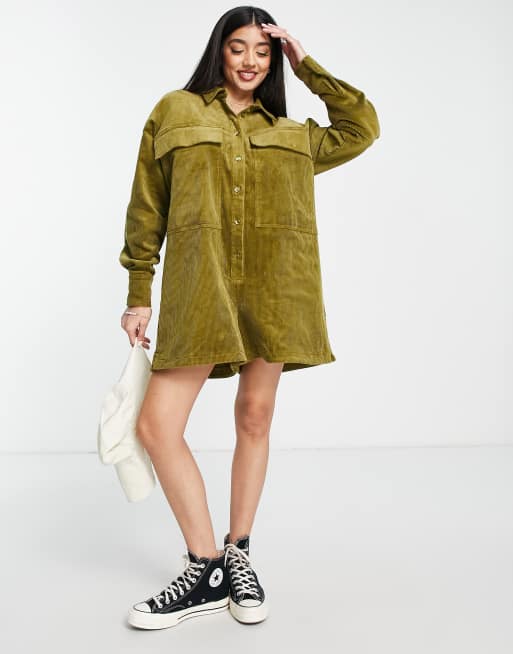ASOS DESIGN - Oversized romper-playsuit van corduroy in olijfgroen
