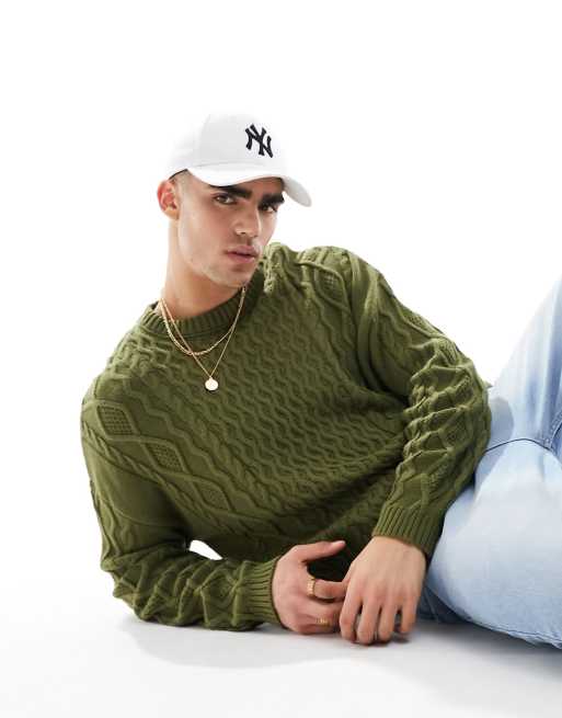 ASOS DESIGN - Oversized ruimvallende gebreide trui met kabels in groen