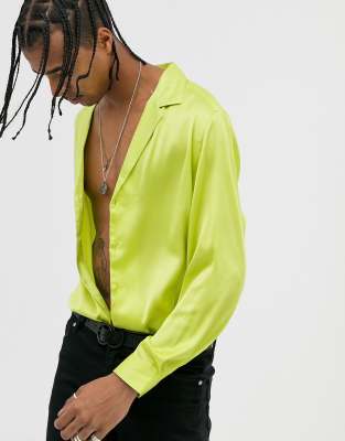 ASOS DESIGN - Oversized satijnen overhemd met lage reverskraag in groen