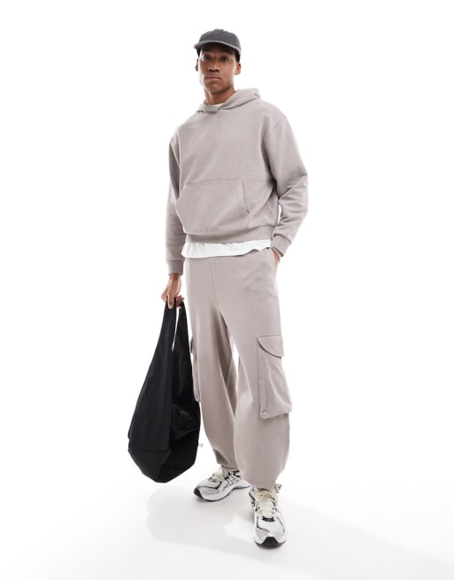 ASOS DESIGN - Oversized set met cargozakken in bruin met wassing