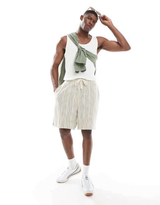 ASOS DESIGN - Oversized short met getextureerde strepen in kaki
