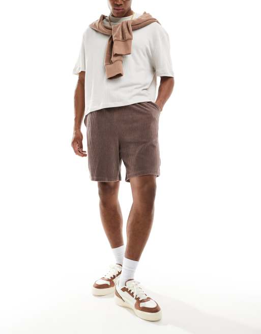 ASOS DESIGN - Oversized short van geribbeld velours in bruin