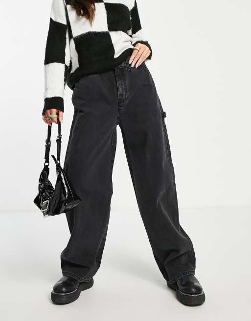 ASOS DESIGN - Oversized 'skater' jeans met medium taille in zwart