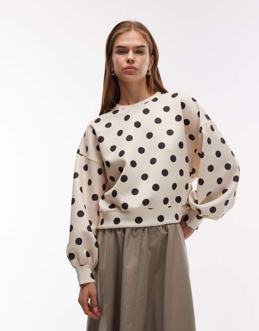 ASOS DESIGN - Oversized sweater van scuba-achtige stof met ballonmouwen en stippen in crème