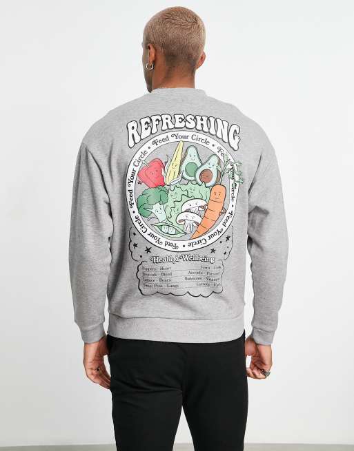 ASOS DESIGN - Oversized sweatshirt in grijs met fruit- en groenteprint op de rug
